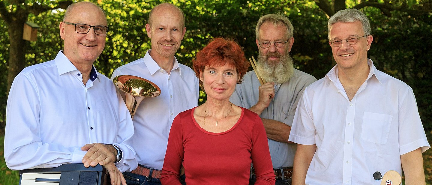 Inzwischen bedienen vier Männer und eine Frau Posaune, Keyboard, E-Bass, Gesang und Schlagzeug.